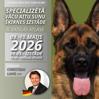 Jaunumi / Kucēnu skates / vaislas atlase 8. oktobris, 2025 Latvijas Vācu Aitu suņu klubs organizē nacionālo vaislas atlasi un kucēnu skati.